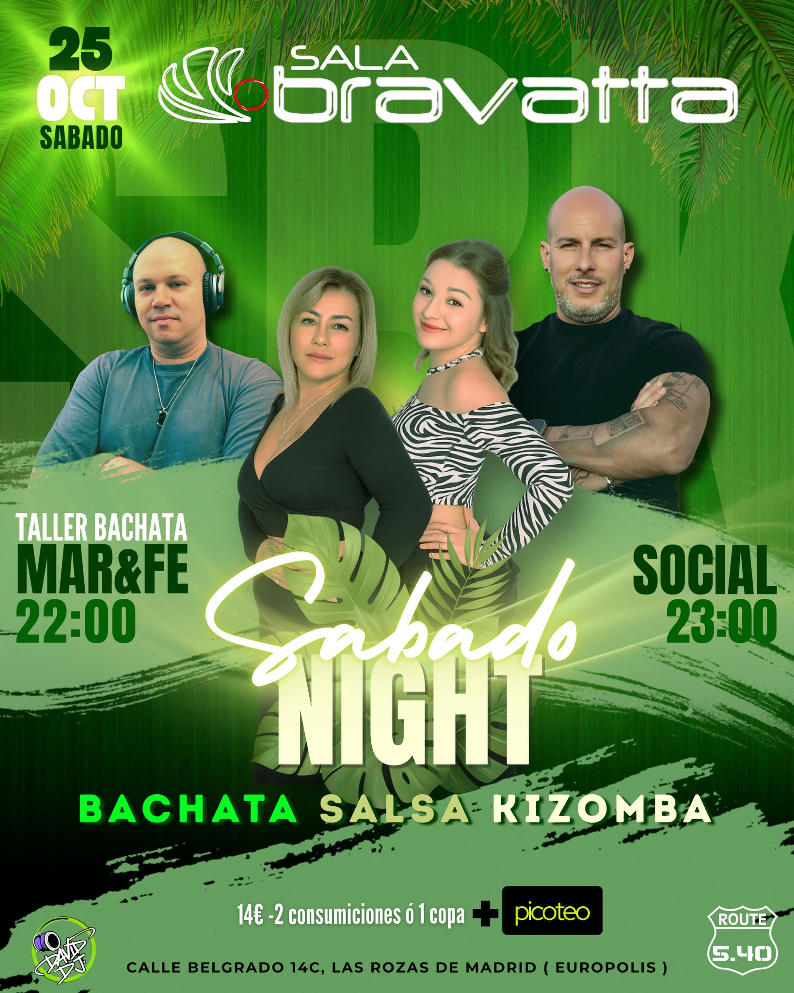 Sala Bravatta Calle Belgrado 14C, Las Rozas de Madrid ( Europolis ), Madrid, SpainDisfruta del Bachata Night Sessión, una sesison SBK de la Ruta 5.40. Taller a las 21:30 y Social hasta las 02:30.