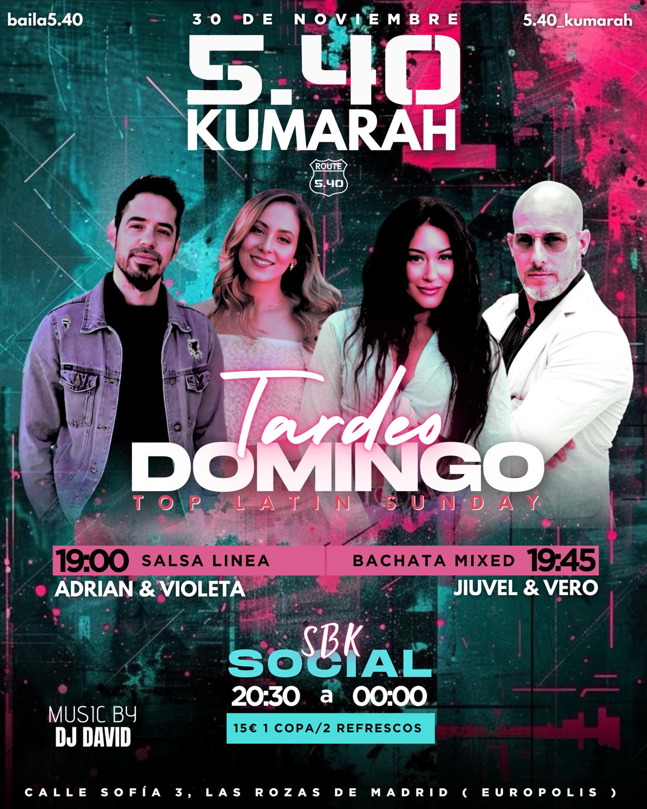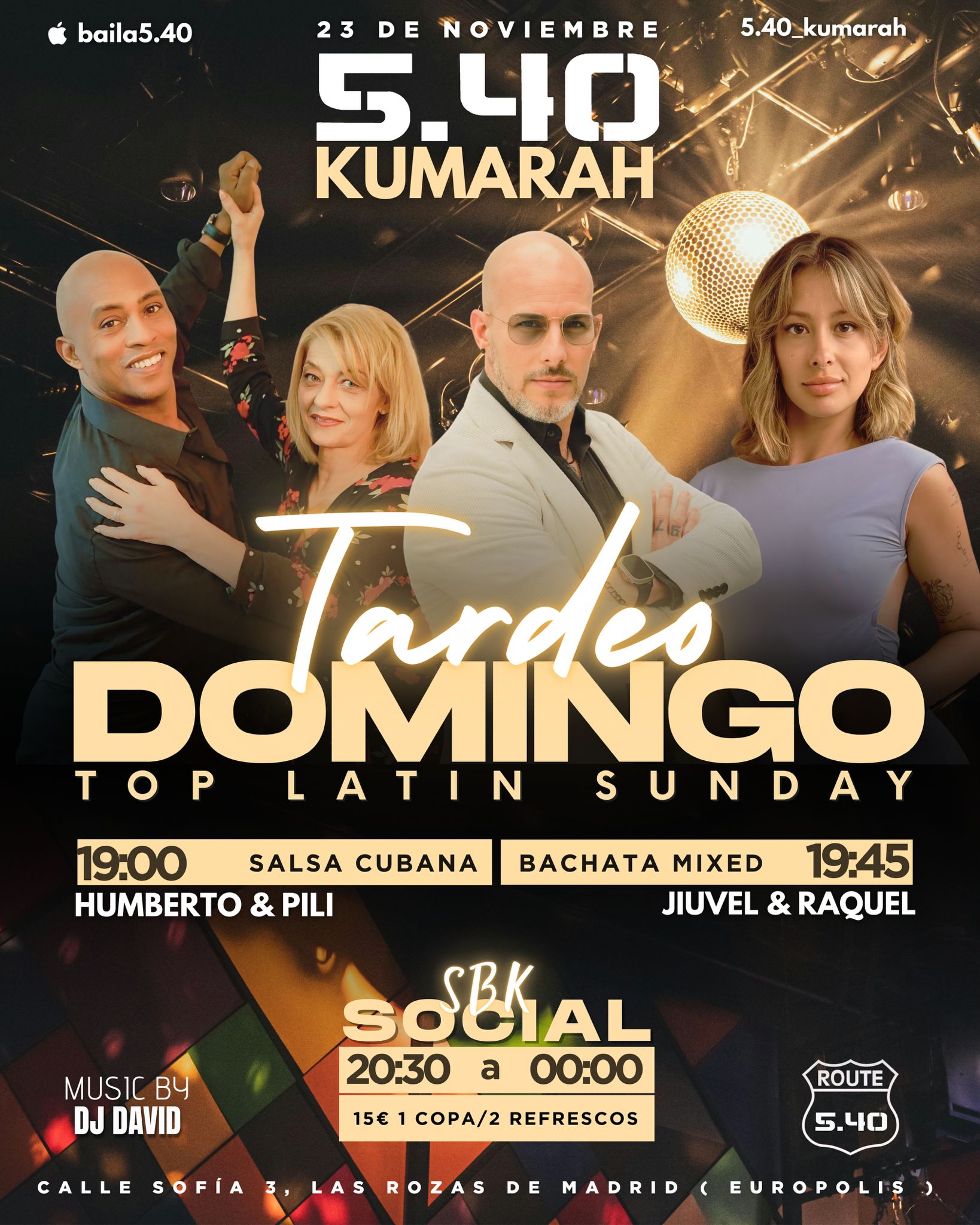 Kumarah Club C. Sofía, 3, 28232 Las Rozas, Madrid, Madrid, SpainTe invitamos a nuestro Tardeo SBK para disfrutar bailando salsa, bachata y kizomba.