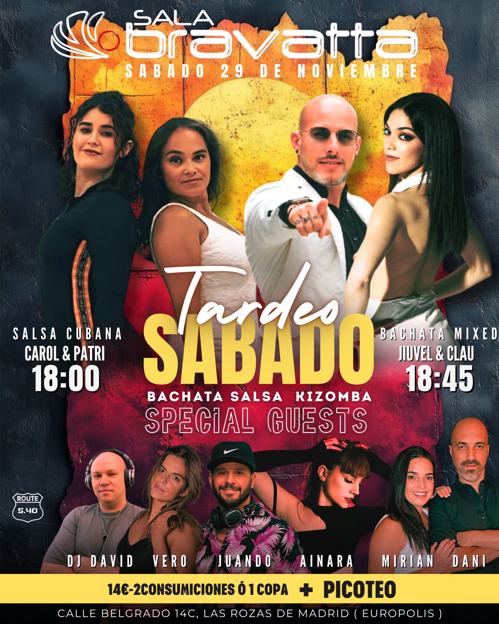 Tardeo Salsa Bachata y Kizomba el Domingo 23 de Noviembre 2025