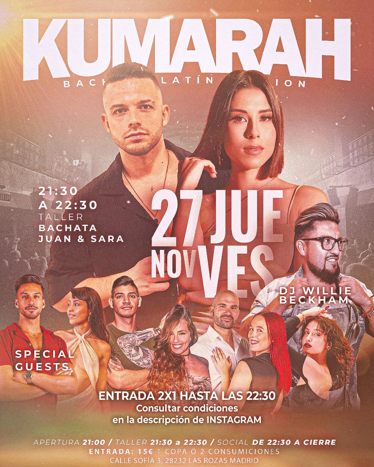 El evento será en Kumarah Club, en Európolis (Las Rozas), con Talleres de salsa y bachata, y una social SBK donde la pista y la terraza vibrarán al ritmo de la música.